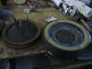 Замена и ремонт резинового бандажа цельнолитых колес на полиуретан.